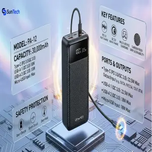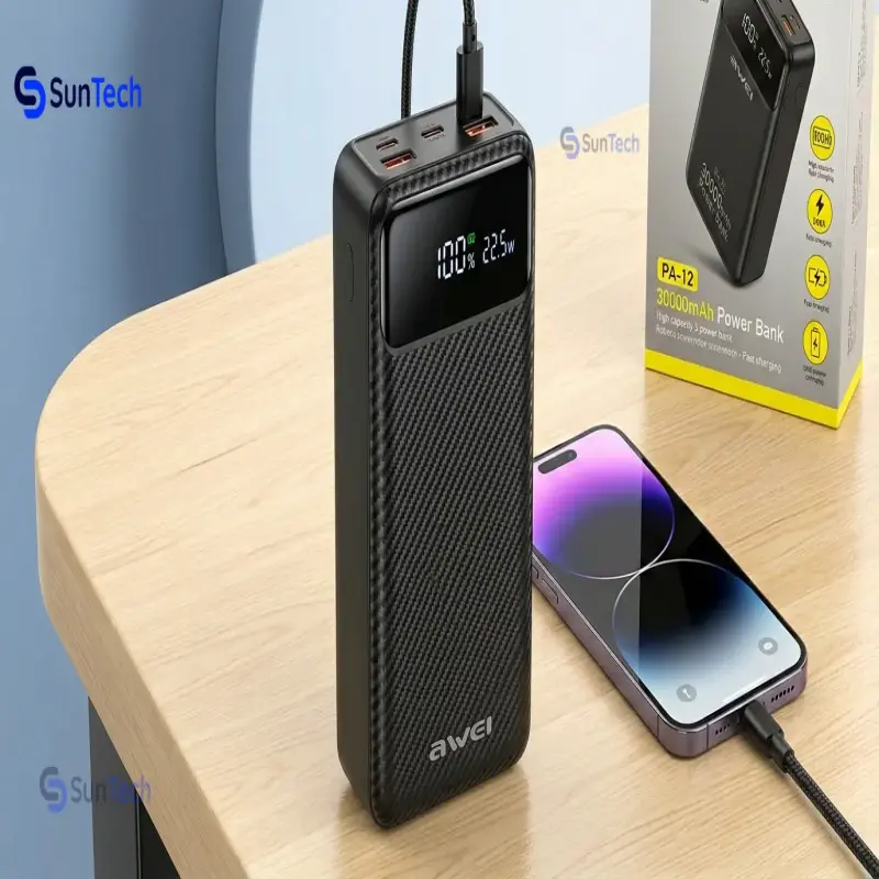 Stay fully charged and connected wherever you go with the Awei PA-12 30000mAh Power Bank—a powerful and dependable solution designed for modern users who demand long-lasting performance and fast charging.