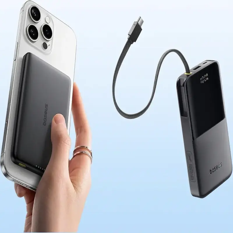 Baseus Qi2 MagSafe 10000mAh 22.5W Power Bank is a next-generation portable charger designed for users who want fast wireless charging with strong magnetic convenience.