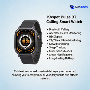 The Kospet Pulse SmartWatch from SunTech is a perfect choice for those who want premium features at an affordable price. Stylish, durable, and packed with smart capabilities—it’s built to match your everyday lifestyle.