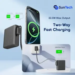 Enjoy 22.5W fast charging output, allowing your devices to charge quickly and efficiently. It also supports two-way fast charging, meaning the power bank itself recharges faster too.